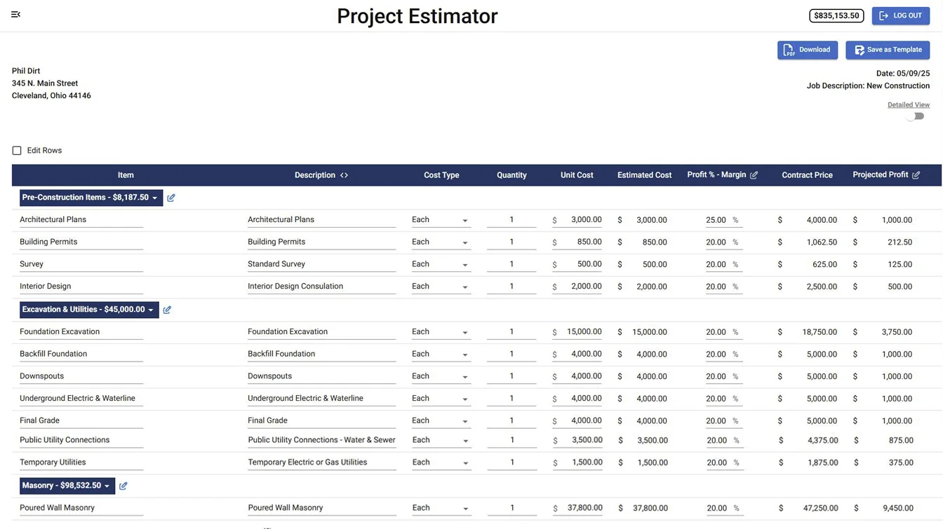 Build precise estimates using templates that save hours and protect your profit every time.