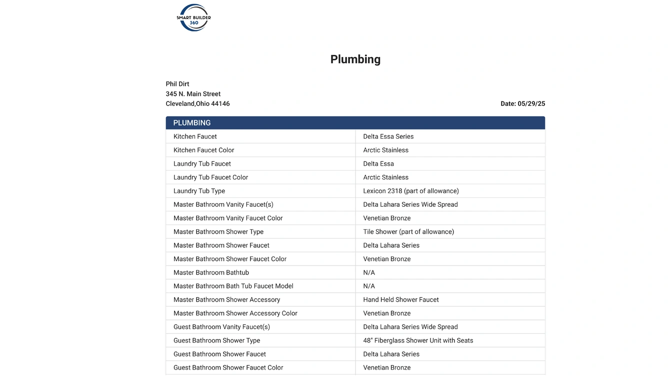 Avoid last-minute confusion with clear, trackable client selections for finishes and materials.